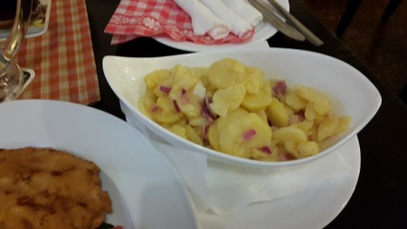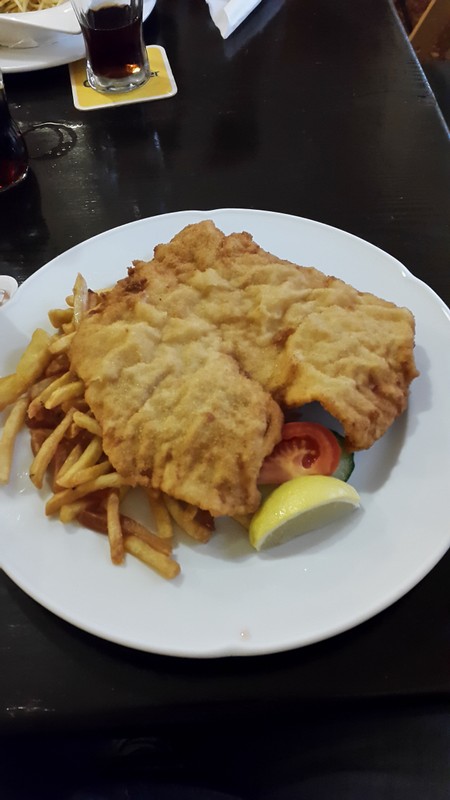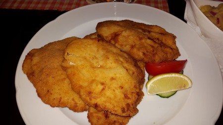 Mit dem Praterzug ging es weiter zum Restaurant Zum Weissen Rössl. Die Kinder assen Spaghetti und wir Wienerschnitzel einmal mit Pommes und einmal mit Kartoffelsalat.