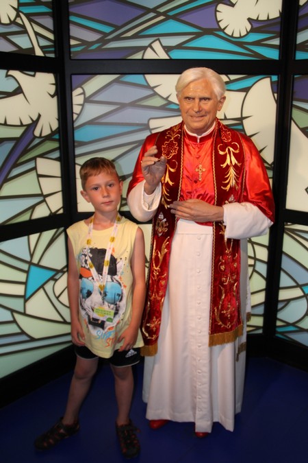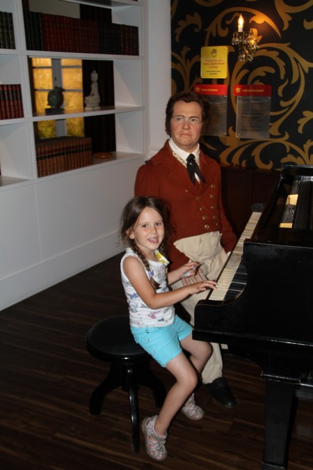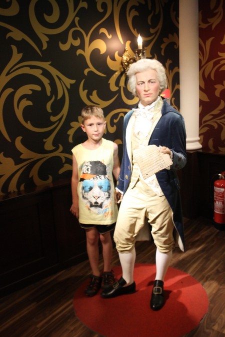 Anschliessend spazierten wir zur U-Bahnstation und fuhren bis Praterstern. Dort besuchten wir zuerst das Wachsfigurenkabinett, das zur Madame Tussauds-Familie gehört. In dieser interaktiven Erlebniswelt trafen wir auf Helden aus Sport, Musik und Film. Die Wachsfiguren waren so kunstvoll hergestellt, dass man meinte, die Berühmtheiten stünden direkt vor einem.