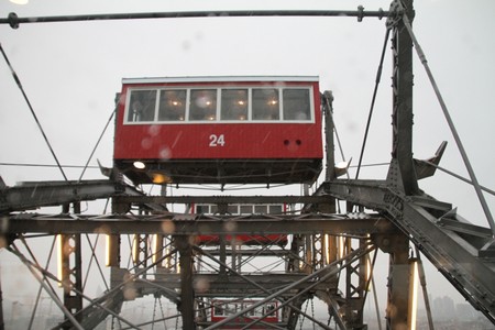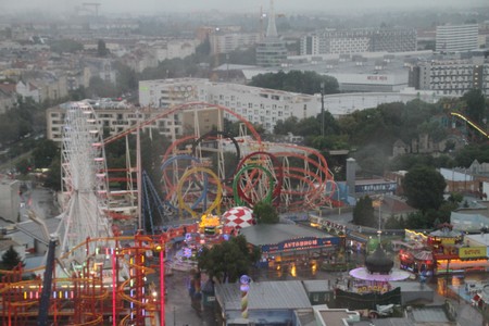 Leider hat es während wir im Museum waren angefangen zu regen, sodass fast alle Bahnen auf dem Prater geschlossen wurden. Wir schlenderten über den Platz und stiegen ins Riesenrad ein, in der Hoffnung, dass das Gewitter schnell vorbei geht.