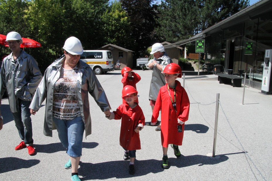 Heute durften die Kinder die Semmel für das Frühstück im Campingrestaurant kaufen. Das Frühstück gab es vor dem Camper bei Sonnenschein und warmen 20°C. Nachdem der Rucksack gepackt war, spazierten wir zur Bushaltestelle Weer Sennerei. Von dort ging es mit dem Bus bis nach Schwaz Interspar. Anschliessend schlenderten wir zum Schwazer Silberbergwerk. Um 11:20 Uhr begann die Führung. Der Bergwerkführer Bruno erzählte uns sehr viel über die Silbergewinnung. Er konnte auch mit Schalk die Kinder begeistern, so waren Sie zum Bespiel die Feuerwehr mit ihren roten Mänteln und mussten uns sicher durch das Bergwerk führen.