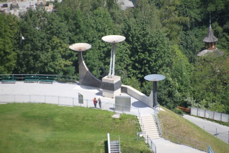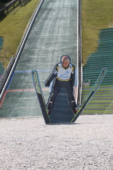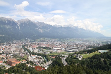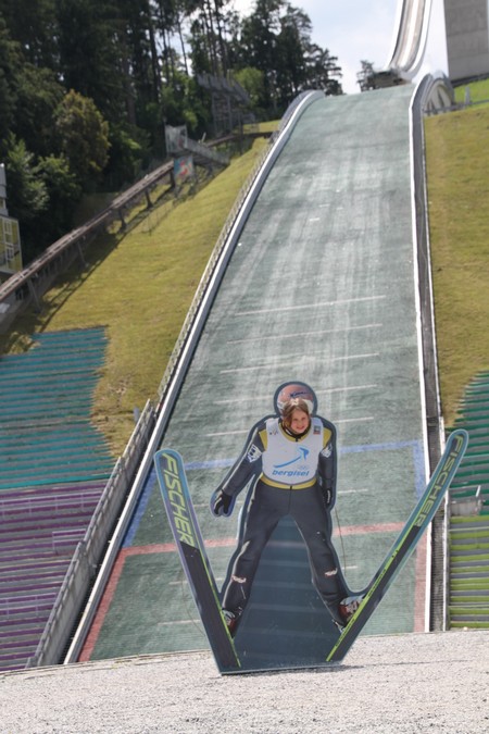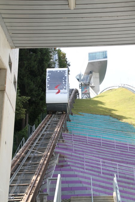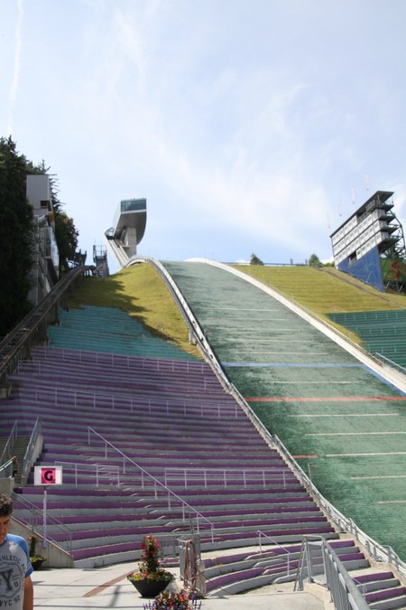 Heute wollten die Kinder wieder Semmel kaufen, da sie gestern ein Schoggiei erhielten. Ich war bereits bei der Rezeption und reservierte das Auto für heute. Der Campingplatz bietet einen Seat für € 25.-/7h zur Vermietung an. Um 10 Uhr fuhren wir los in Richtung Innsbruck. Der erste Halt war in Bergisel. Wir besichtigten das Skisprungstadion und fuhren mit dem Schrägaufzug zur Schanze. Leider waren die Skispringer nicht mehr am Springen, obwohl im Internet stand, dass sie von 10-12 Uhr trainieren. Auf der Aussichtsterrasse genossen wir den Ausblick über Innsbruck. Hinab nahmen wir die 455 Treppenstufen und lasen die informativen Tafeln.