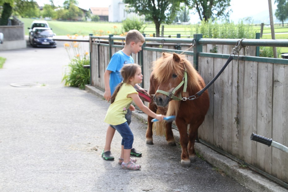 Nach dem Ausritt musste das Pony gebürstet werden.