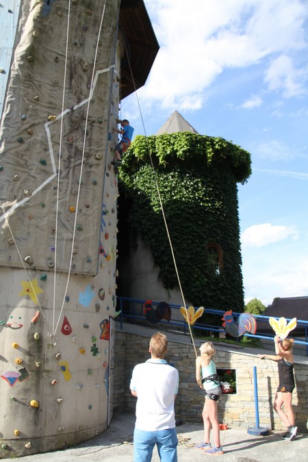 Anschliessend war klettern auf dem Programm. Da dies im Moment noch nicht angeboten wird, war es ein Training für die Animateurinnen unter Aufsicht des Campingwartes.