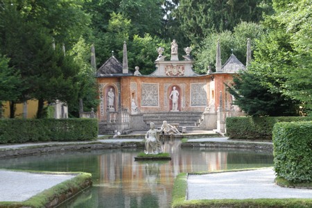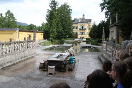 Heute nach dem Morgenessen packten wir alles zusammen und reisten weiter nach Salzburg. Nach 2 Stunden Fahrzeit trafen wir auf dem Campingplatz Schloss Aigen ein. Wir konnten uns einen Platz auf der grossen Wiese aussuchen. Zuerst richteten wir uns ein und assen das Mittagessen. Später kauften wir uns im Campingrestaurant die Salzburgerkarte für 48 Stunden. Mit der Karte können viele Sehenswürdigkeiten gratis besucht werden und der ÖV ist auch inbegriffen. Wir spazierten ca. 10 Minuten zur Bushaltestelle. Nach zweimaligem Umsteigen ging es zu Fuss zum Wasserschloss Hellbrunn.