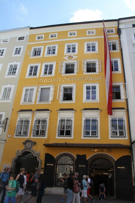 Der Spaziergang führt uns weiter zum Mozarts-Geburtshaus. Hier wurde W.A. Mozart am 27. Januar 1756 geboren. Die Wohnung der Familie Mozart wurde als Museum unfunktioniert. Man kann Dokumente und Bilder sowie Instrumente von W.A. Mozart sehen.