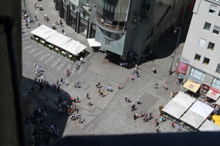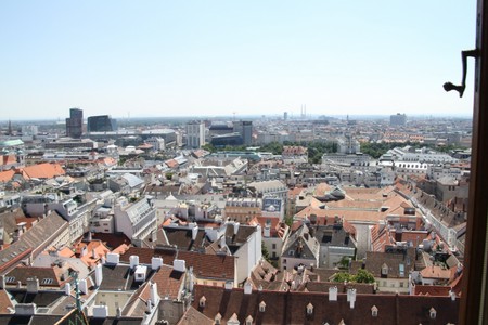 Anschliessend stiegen wir 343 Stufen im Südturm des Stephansdom hinauf und genossen die schöne Aussicht hoch über Wien.