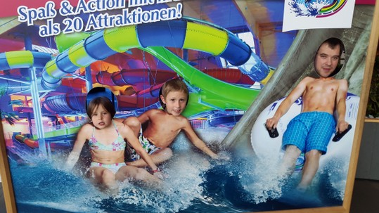 Am Samstag durften die Kinder die vorbestellten Brötchen an der Rezeption abholen. Wir bereiteten das Frühstück vor und die Sachen für den Überraschungsausflug. Nun geht es mit dem ÖV nach Titisee-Neustadt. Die Freude war gross als wir beim Badeparadies Schwarzwald ankamen.