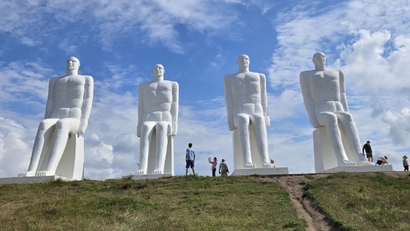 Heute Morgen sind wir von der Kammerslusen abgefahren und haben einen kurzen Zwischenstopp bei Mennesket ved Havet gemacht – den eindrucksvollen weissen Riesenstatuen an der Küste bei Esbjerg.