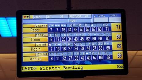 Am Abend besuchten wir das Bowlingcenter. Wir bowlten eine Stunde.